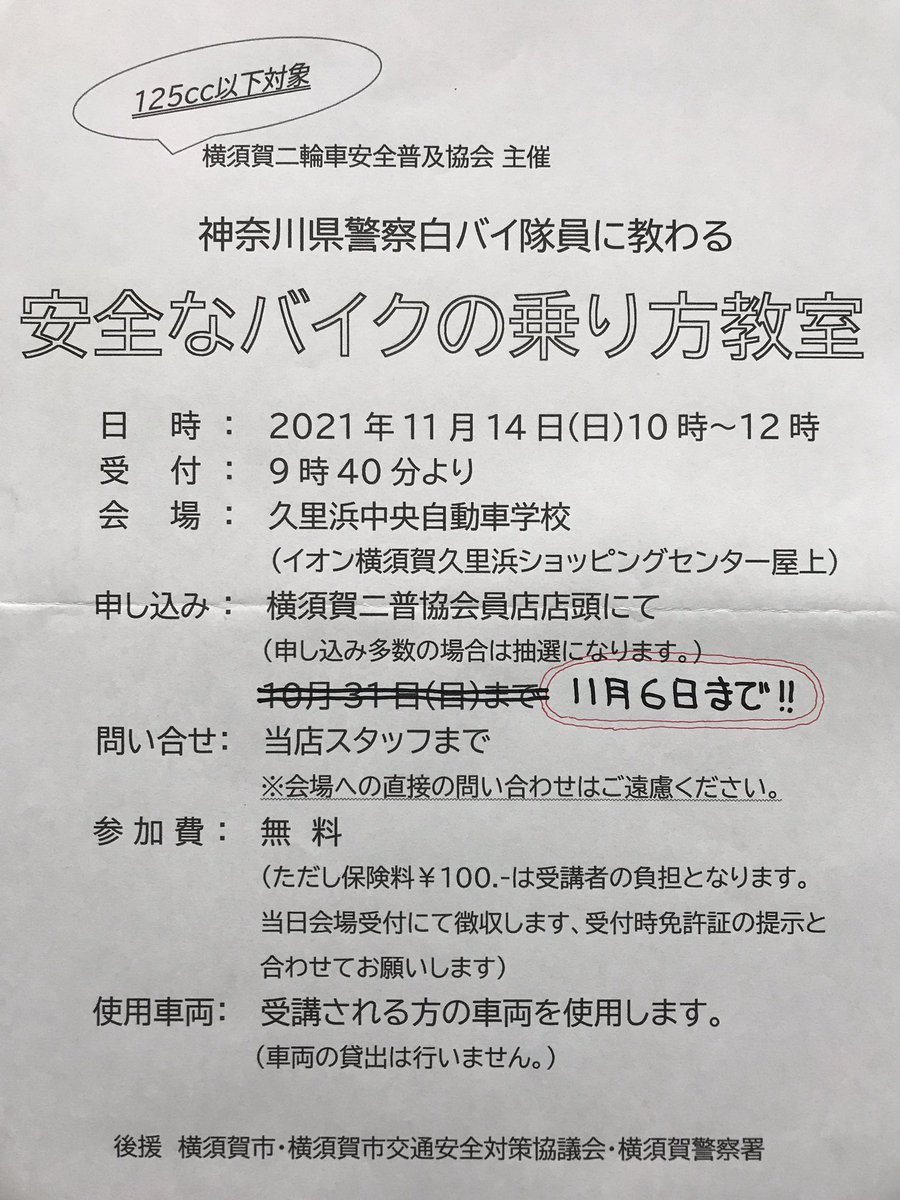 本日、二輪車の教習は、ございません